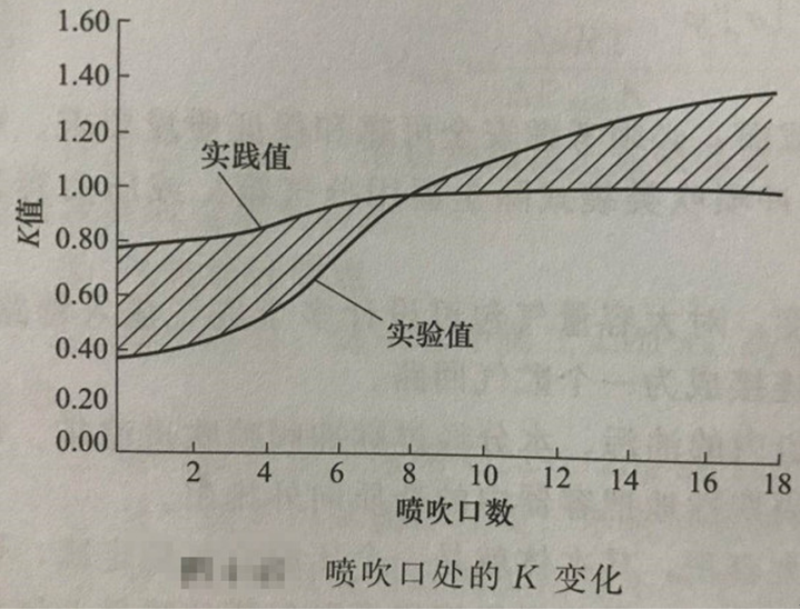K為噴吹口氣流流量與平均值的比例,可參考下圖取,也可由實驗確定。